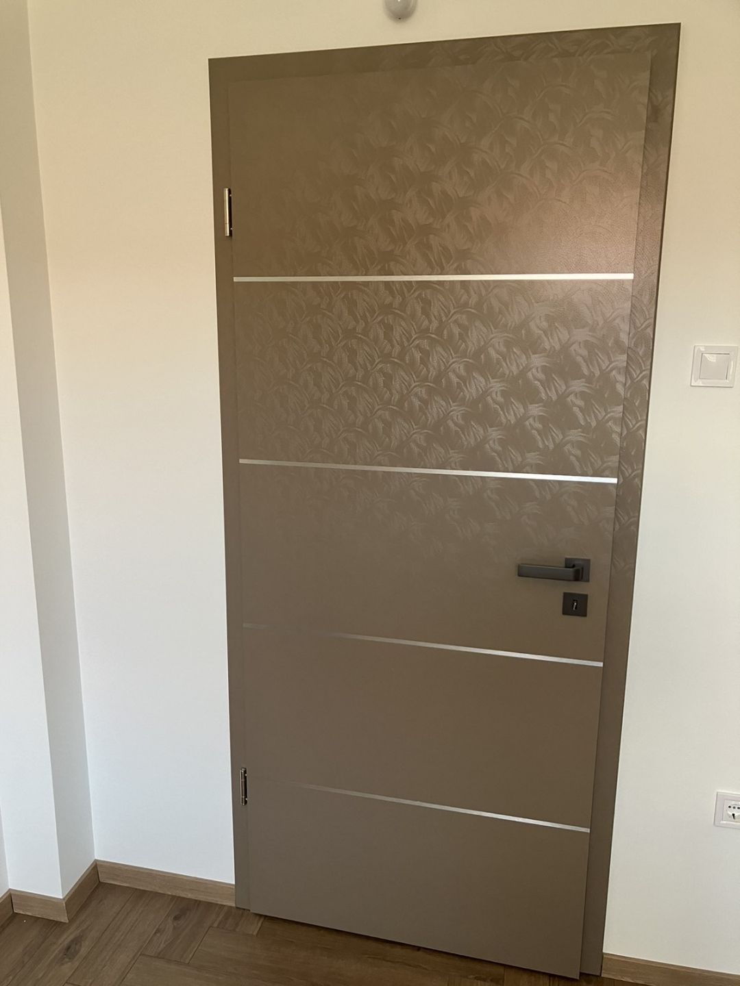 Ebben a típusban a valódi fémbevonatú intarzia a laminált felülettel egy síkban helyezkedik el, és az ajtó valódi szerkezeti eleme.