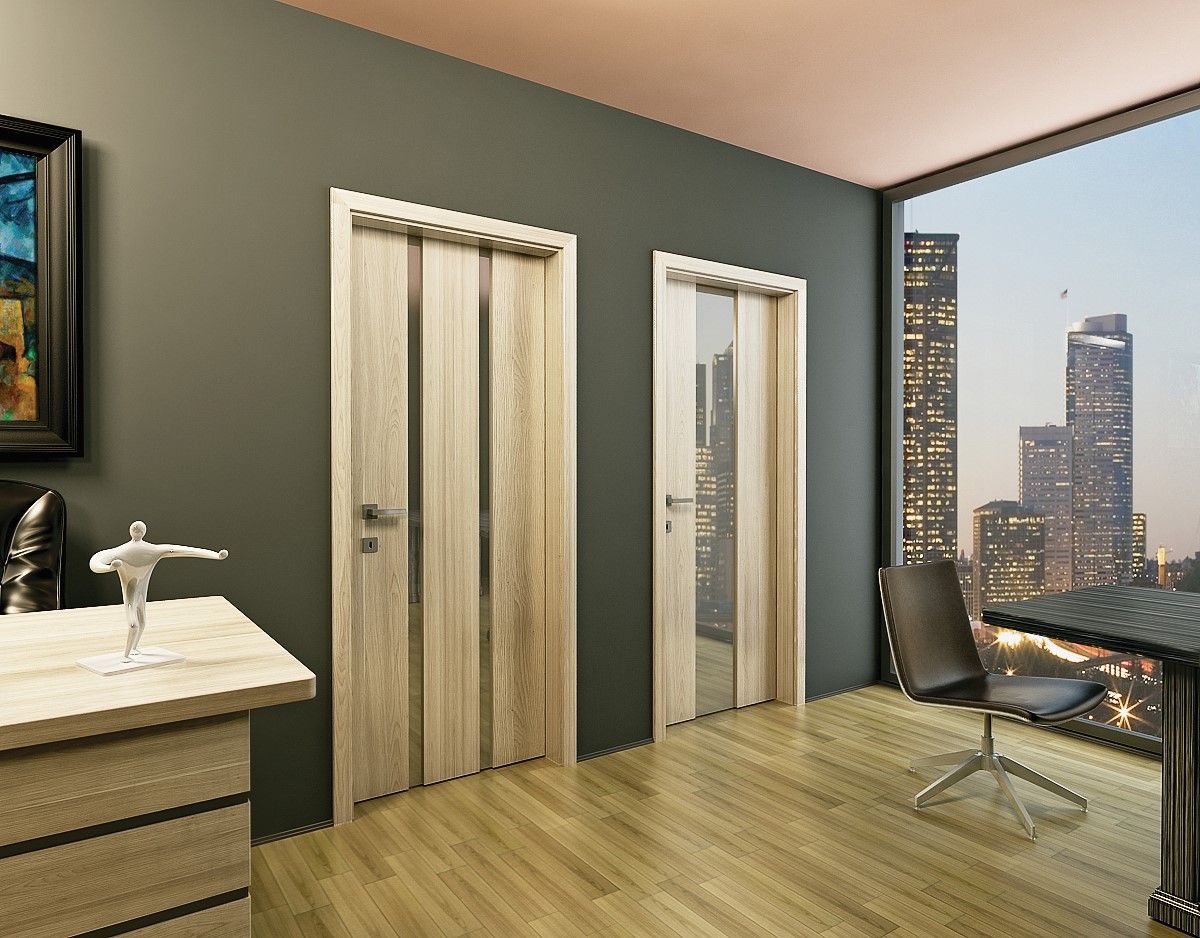A síkfelületű, kivágásokat készítünk, ezek alakja lehet négyzet, téglalap, kör, ellipszis, rombusz vagy paralelogramma. A kivágásbakerülhet üveg, vagy két összeforgatott laminátumból készült 10 mm vastag dekor betét. Szegése üvegbeszorító léccel történik, az egyenesek az ajtó színével megegyező fóliával készülnek, az íves vonalúak egyszínű festett felületűek. Az üvegkialakítással készülő ajtók a lakás valódi díszeivé válhatnak.